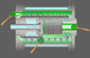 Product inlet via rotor / immersion tube system prevents back flow of grinding media into the feed line.