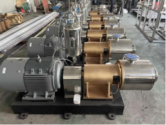 高剪切分散乳化設備不是一般的混合設備。在批次混合工藝中,轉子高速旋轉所產生的高切線速度和高頻機械效應帶來的強勁動能,使物料在定、轉子的間隙中受到強烈的機械及液力剪切、離心擠壓、液層摩擦、撞擊撕裂和湍流..